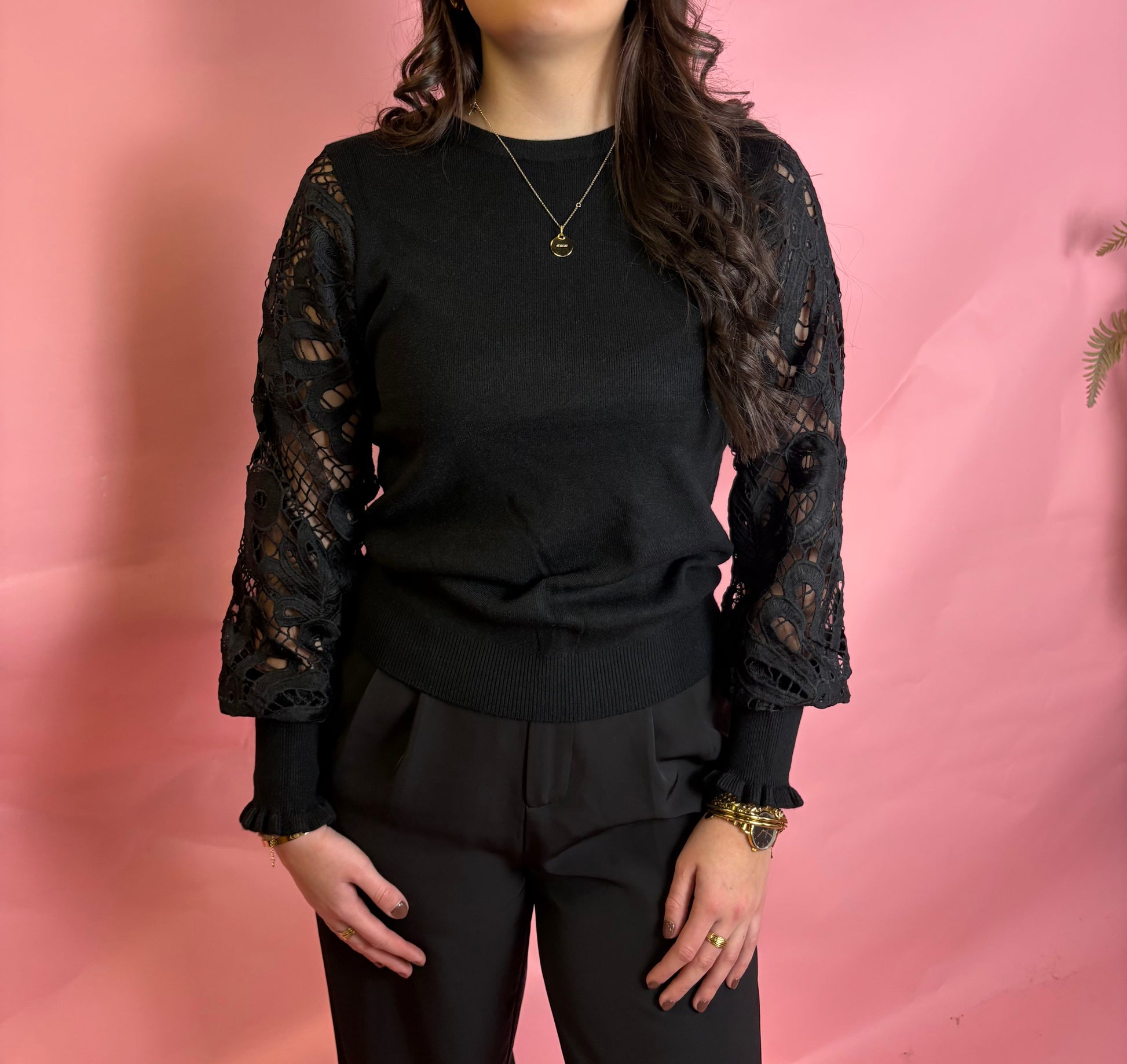 Simple but cute ! Deze knit top combineert comfort met een vrouwelijke uitstraling. De fijngebreide top voelt zacht aan, terwijl de kanten mouwen zorgen voor een elegante en luxe touch. De subtiele ruffle aan de manchetten maakt het geheel net even specialer. Makkelijk te stylen voor zowel een casual als geklede look.