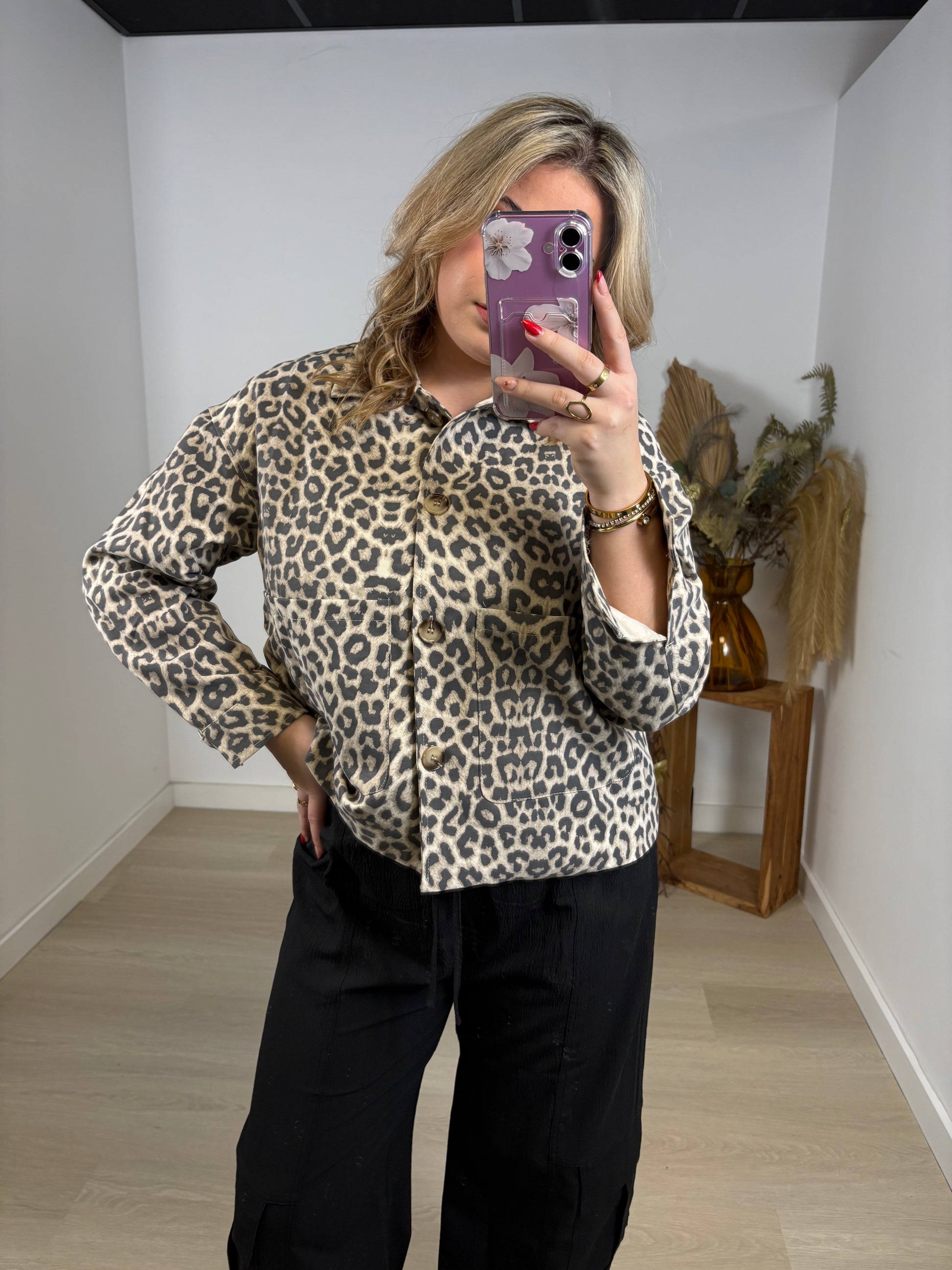 Deze overblouse is het perfecte item voor een stijlvolle, effortless look. De zachte stof in combinatie met de subtiele leopard print zorgt voor een trendy maar draagbare uitstraling. Draag ’m los als jasje of gesloten als blouse – ideaal om te layeren.