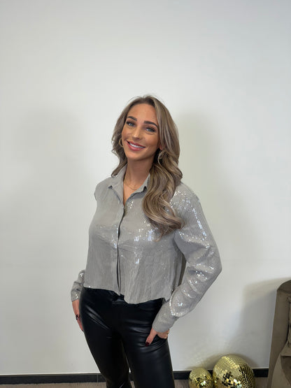 The sparkle season is coming! Hoe leuk is dit blousje?! Het blousje valt cropped en is all over afgewerkt met pailletten. In meerdere kleuren beschikbaar.